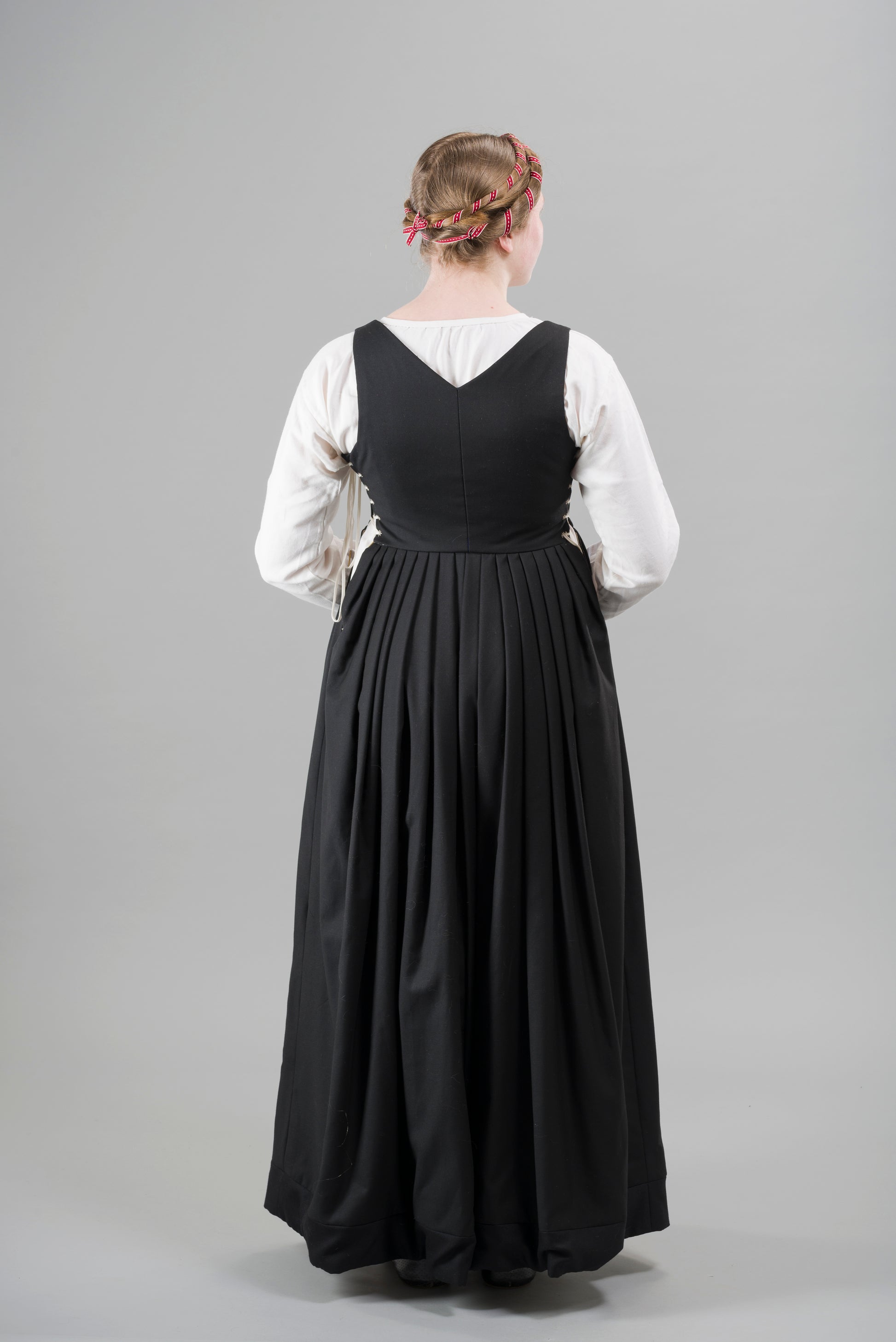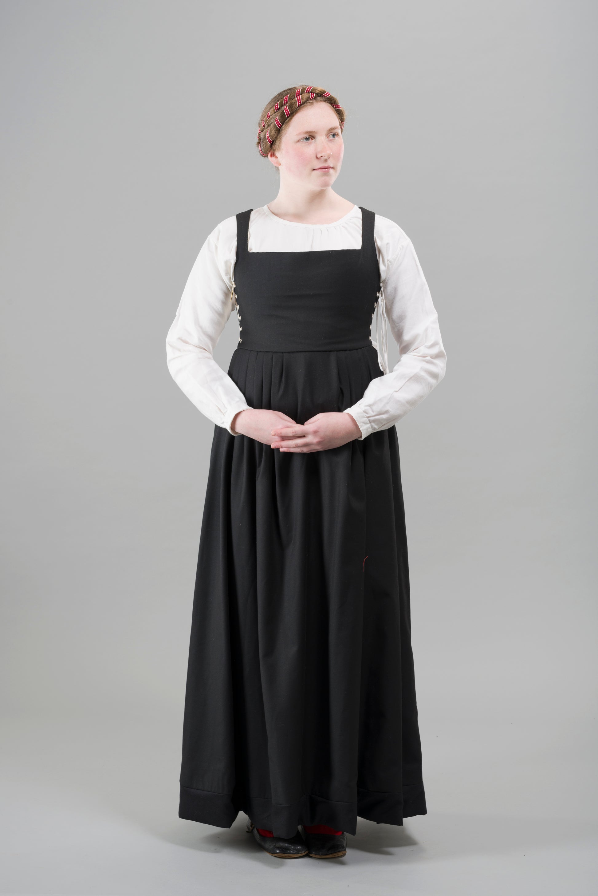 Finished garment - Tudor woman's black worsted kirtle as featured in The Typical Tudor