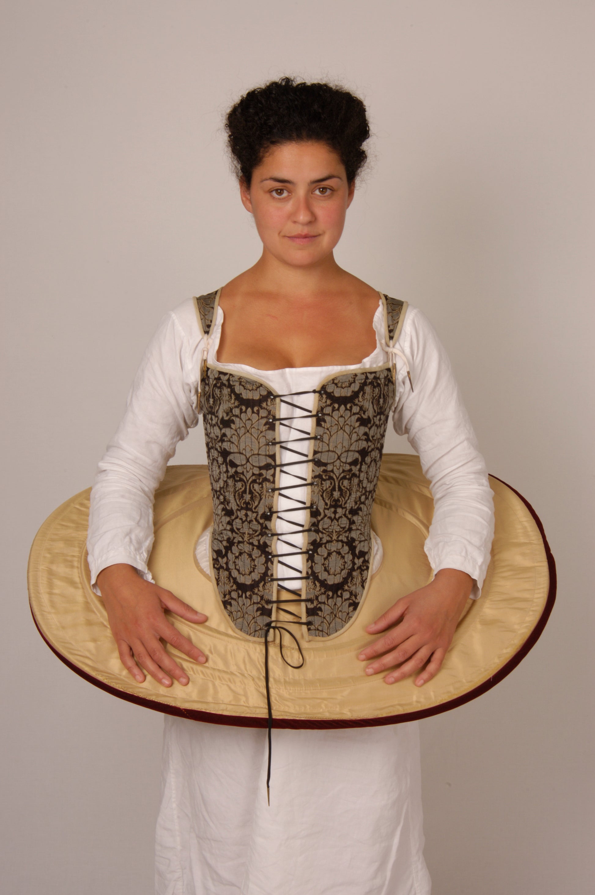 Pattern for Elizabethan lady's French farthingale & rolls, nowadays called a drum or wheel farthingale